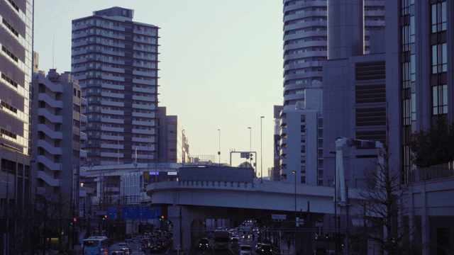 높은 빌딩과 분주한 교통이 자리한 도시 경관