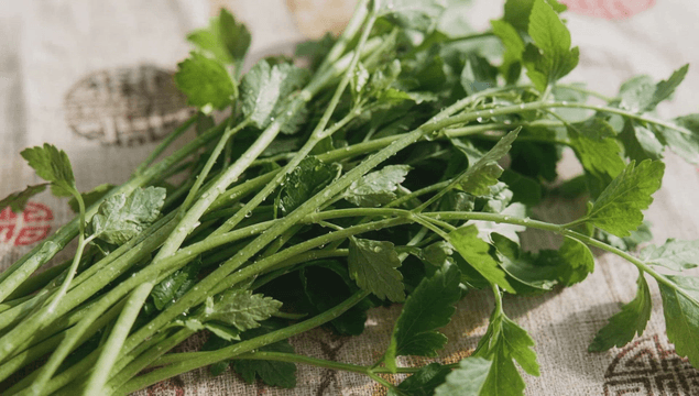 테이블 위의 신선한 미나리
