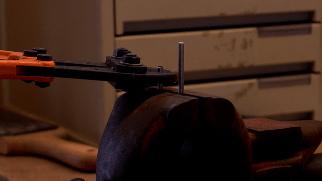 바이스에 고정된 금속 와이어