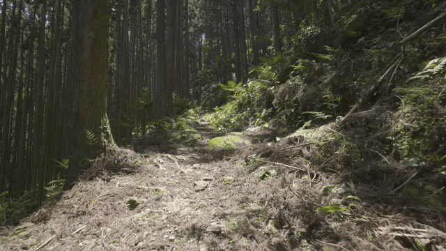 무성한 숲길을 풀을 잘라가며 걷는 등산객들