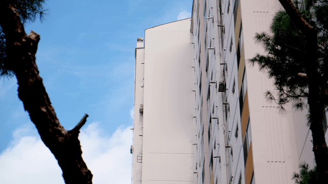 흐린 하늘 아래 오래된 아파트 건물