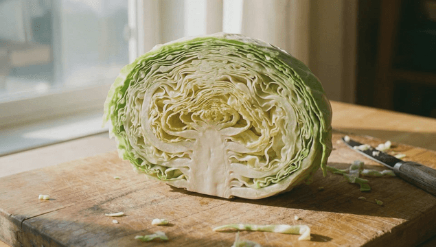 도마 위에서 잘리는 양배추들