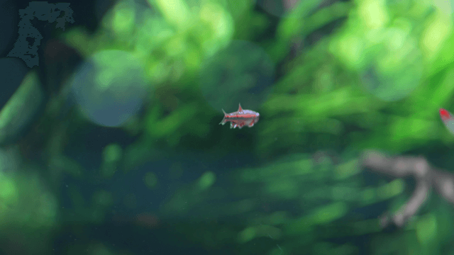 수족관 바닥에서 먹이를 먹는 작은 물고기들