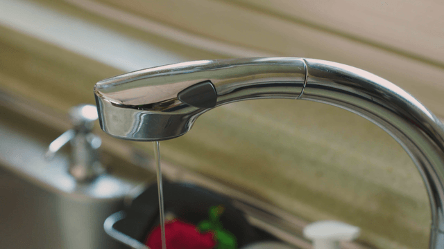 부엌 싱크대에서 행주를 빠는 젊은 여성