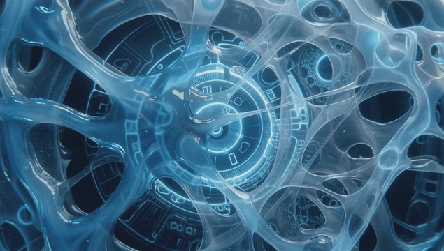 숫자와 이미지가 떠 있는 디지털 인터페이스