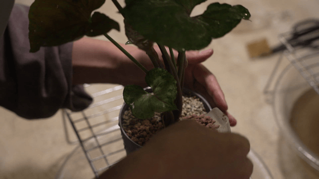 식물을 화분에 고정하는 손