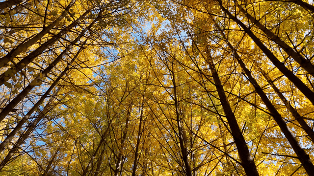맑은 하늘 아래 황금빛 가을 나무
