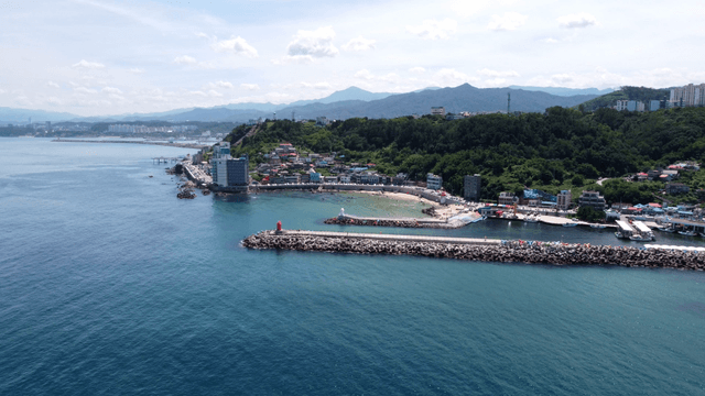 맑은 바다와 해안 마을