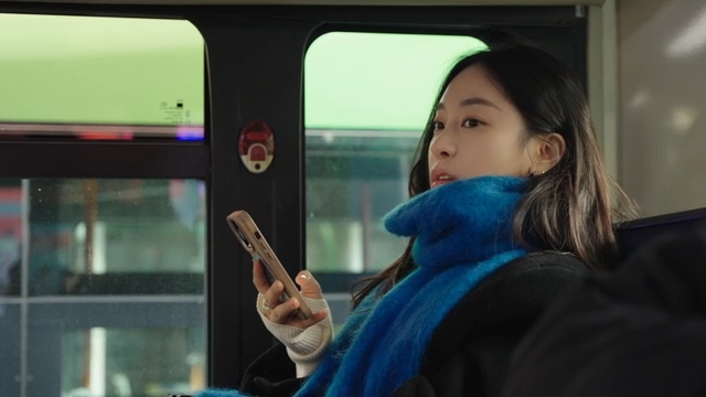 버스에서 휴대폰을 들고 있는 여성의 옆모습