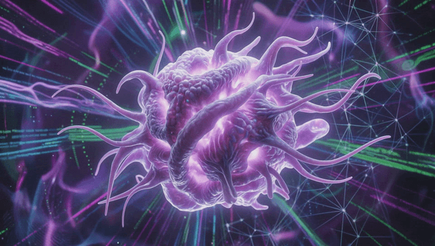 핀셋으로 보라색 액체를 반으로 가르는 장면