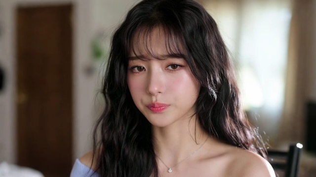 생각에 잠긴 표정으로 실내에 앉아 있는 여성