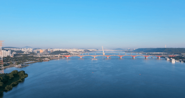 강 위의 다리와 도시 스카이라인