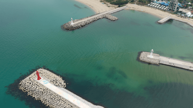 방파제가 있는 해안 풍경