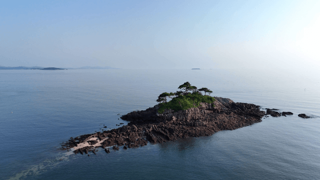 푸른 바다로 둘러싸인 바위섬