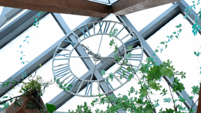 선반 위 빈티지 시계의 시간이 흐르는 모습