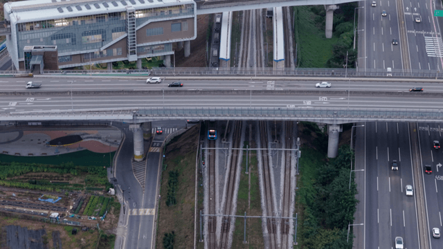 많은 차량이 있는 혼잡한 고속도로 톨게이트