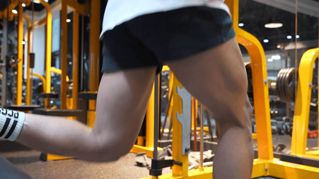 운동 기구가 있는 체육관에서 운동하는 사람