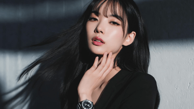 자신감 있는 포즈를 취하며 미소를 짓는 긴 머리 여성