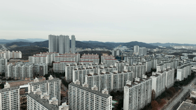 아파트가 빽빽히 들어선 교외 도시 경관