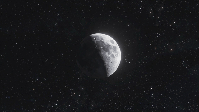 나무 실루엣과 달이 뜬 밤하늘의 고요한 경관