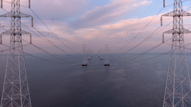 송전탑의 고압 전선을 점검하기 위해 이동하는 전기 기사들