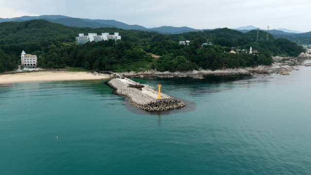 평화로운 숲이 우거진 외딴 섬의 해안경관