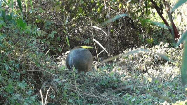 햇살이 비치는 숲 속에 쉬고 있는 고라니