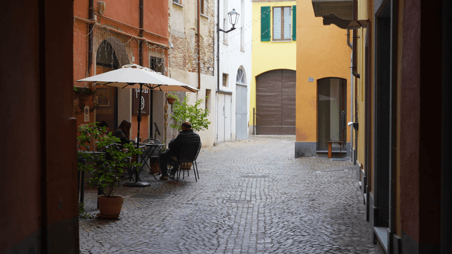 자전거가 있는 조용한 밤의 카페 한 켠 모습
