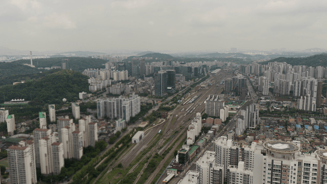 철도와 함께 펼쳐진 도시 전경