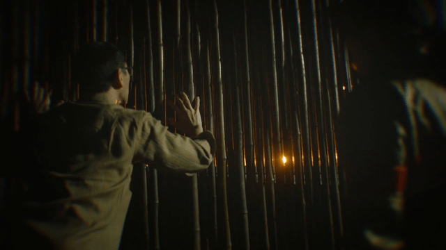 어두운 곳에서 카메라 찍는 손짓하는 남자