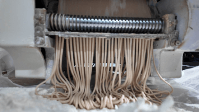 그릇에 면 형태로 디저트 토핑이 눌려 나오는 장면