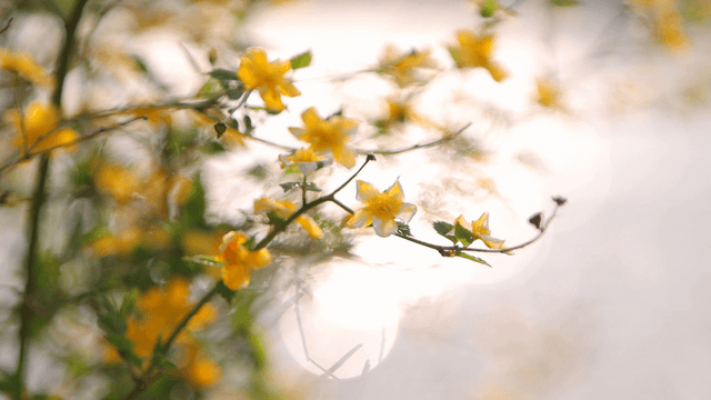 봄에 나무에서 피어나는 노란 산수유 꽃