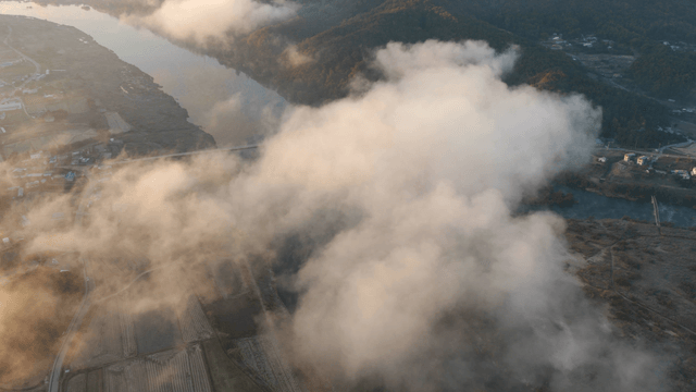 넓게 펼쳐진 농촌 농지와 마을의 항공 뷰