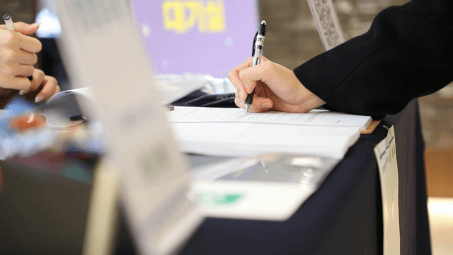 펜으로 문서에 서명하는 장면