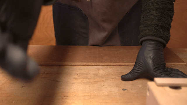 작업장에서 나무 판자를 다루는 사람
