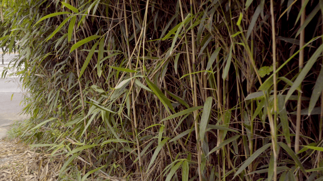 햇빛 아래 울창한 대나무 숲을 지나는 산책로