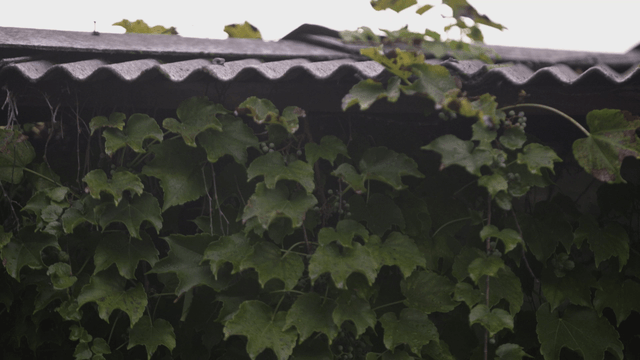 유리 지붕을 배경으로 한 녹색 덩굴 잎